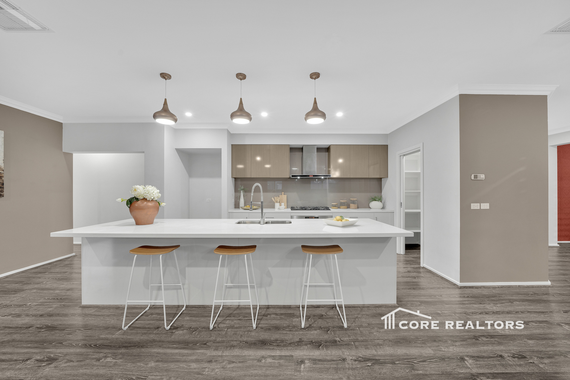 Chef’s Kitchen: Designed for the home cook, this impressive kitchen includes approximately 3.6-metre long island and kitchen benchtops, 900mm appliances, dishwasher, stone benchtops (40mm), overhead cabinetry, plenty of cupboards and drawers underneath benchtops, soft-close drawers and cupboards, and a spacious walk-in pantry with ample shelving.