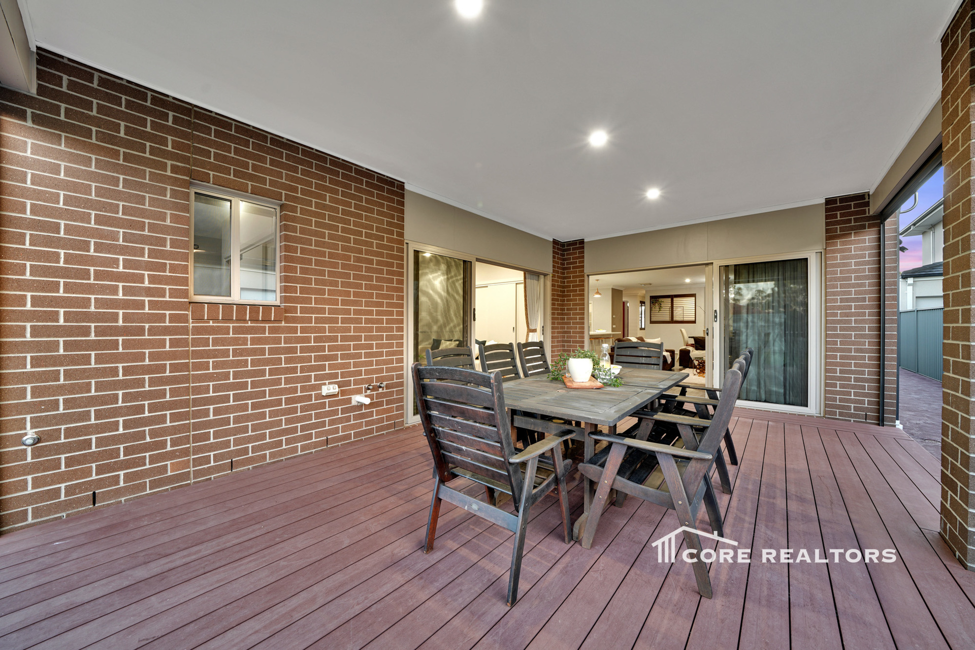 Indoor-Outdoor Flow: Two large sliding stacker doors lead to a massive decked alfresco area (one from living room and second from rumpus room), complete with remote-controlled outdoor blinds and BBQ provisions (hot/cold water, gas, and drainage).