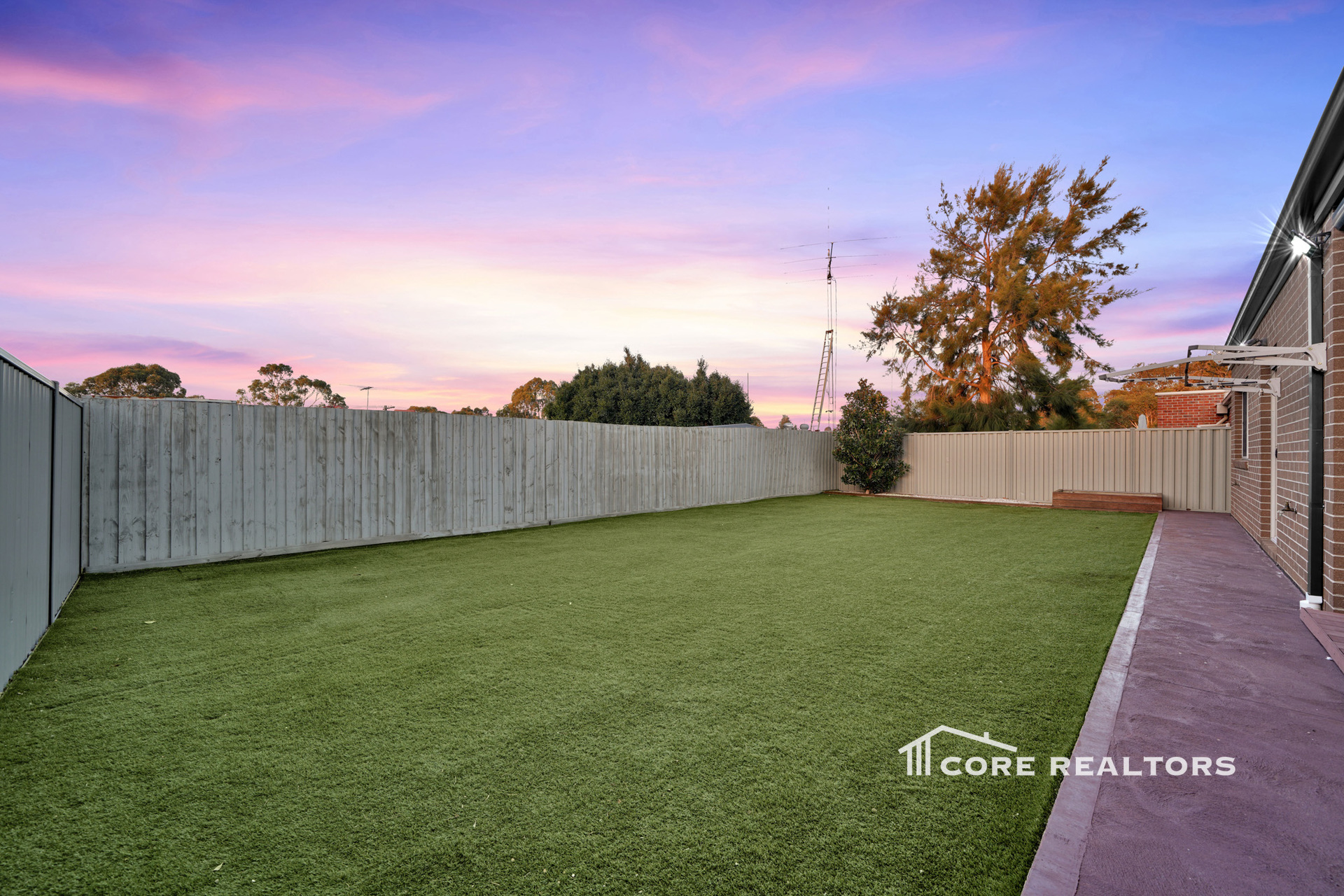 Low-Maintenance Living: Landscaped front and back yard, concrete pathways surrounding the home, exposed aggregate driveway, and a double garage with epoxy flooring.